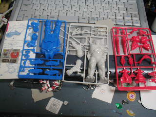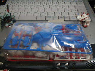 | 内容物。 赤・白・青のランナー3枚、説明書、シールが 入ってます。意外と多いですね。 |