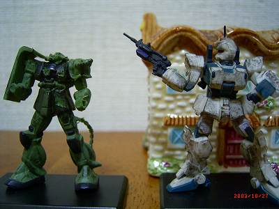 ザクに向かってマシンガンを打ち終わった後です。 |