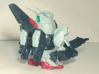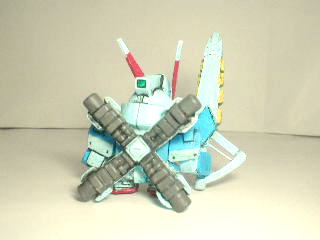 | バックショット。 スラスターは市販のパーツに変更してあります。 頭はほとんどプラによる加工で大変でした(汗)。 |