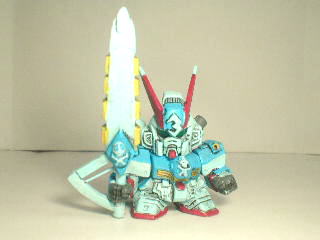 | バックショット 改造点は ・腕のIフィールド ・角と額 ・バーニア です。 簡単そうですが結構いろいろ弄くりました。 |