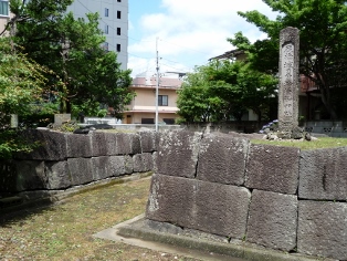 少し歩いた日経新聞社裏に、ひっそりと車橋門跡の石垣があります。