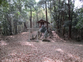 竪堀を降りたところが大手口で、そこから本丸の方に戻り、本丸の北側の祠がある