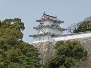 「明石城」 2010年3月に訪れました。明石駅の駅前、明石公園にあります。 坤櫓と巽櫓が 現存しており、明石駅ホームからも並んでみえます。坤櫓の内部が1階部分だけですが特別公開されていました。石垣も高く素晴らし かったです。今回は時間が無く食べませんでしたが、明石駅周辺には明石焼きの お店が複数あるみたいですよ。