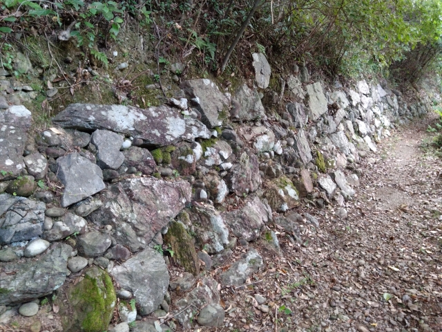 最後に、5郭と7郭間の横堀を散策しました。ここには石積があるのですが、遺構なのか