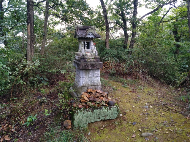 2郭に入ります。読めない説明板、そして、祠もありました。3郭に降ります。3郭北側