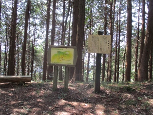 山頂の少し北側に「深沢布袋山城本丸跡」の看板があります。