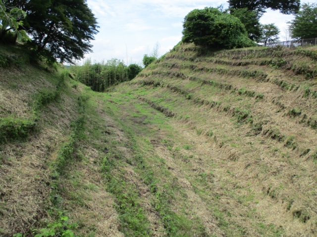 通り北側の虎口まで行きました。虎口から主郭2郭間の堀に降ります。主郭東側の堀は