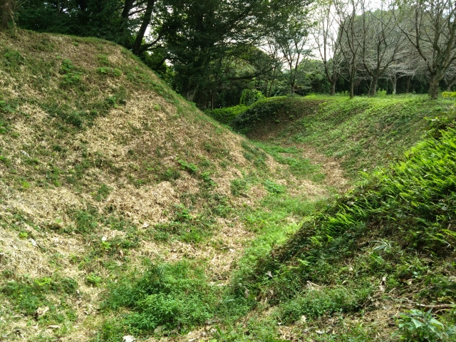すると、その向こう側に深さ3メートルの南側空堀がありました。折角の見どころなの