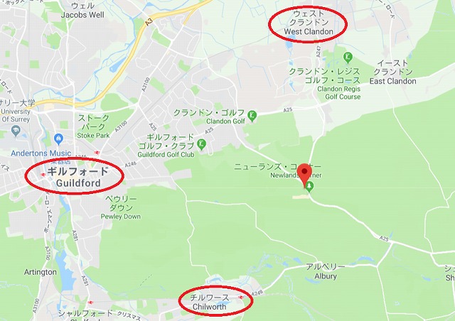 いつかはこの地を訪ねて、この辺りを彷徨っていたクリスティの心理状態を少しでも共有してみたいものだと漠然と考えていたのだが、平井杏子著『アガサ・クリスティを訪ねる旅』にもNewlands Cornerは紹介されてはいないので、訪問は大変だろうと後回しにしていた。だが数年前にGoogle Mapで検索してみると、Newlands Cornerはギルフォード(Guildford)駅から車であれば20分程で行けることを知った。そして頂上にはVisitor Centreやレストランもある。旅行者が軽装備で訪れても問題なさそうなので、ウォーキング好きな私としては、半ば強引に今回の旅行計画に組み入れたわけだった。