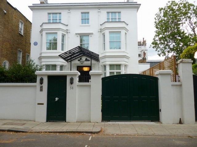地下鉄Notting Hill Gate駅から徒歩10分。マローワンと再婚したクリスティが、住みよい家を探していて気に入り購入。通りから奥まった所にある、どっしりしたたたずまいの一戸建て。