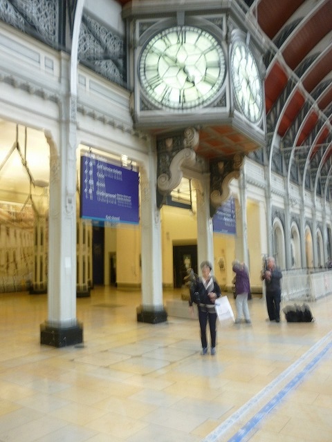 小説にちなみ、4時50分に大時計の下で記念写真を撮る。数藤さんはお孫さんのお土産を、私は小西さん情報のおいしいクッキーや紅茶を購入。