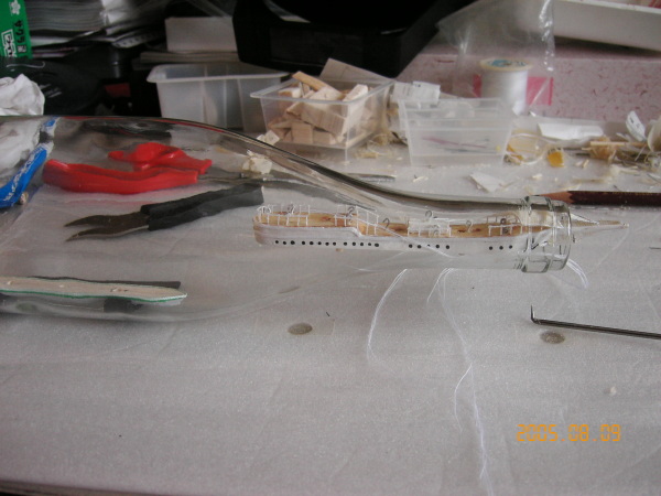 <スライドショーをご覧になるには>「ボトルシップの組み立て」のスライドショー1へようこそ!写真は全部24枚です。をクリックするとスタートします。をクリックすると写真が止まります。続けるには再びをクリックしてください。