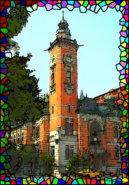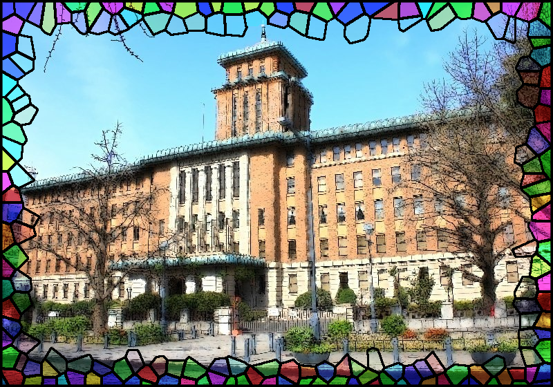 ![]() (2013年3月) 「神奈川県民」として以前から三塔のことが知っているが、まじめに三塔の写真を撮ろうと思ったのはごく最近のことです。先月のある週末、天気がとても晴れていました。赤レンガ倉庫で昼食をした後、やる気満々でカメラのレンズを三塔へ向かわせました。しかし、結果は散々でした。実はこの三塔もっとも個性的なアングルはいずれも東南東に向かっています。午後になると、すべて逆光であり、写真のコントラクトが悪くなって、納得の写真を撮れませんでした。 それからちょうど一ヶ月、横浜へリベンジに出かけました。天気にも恵まれて、今度こそ早々8時台で現場に到着しました。プロの作品とほど遠いが、一応自分に納得できました。さらに、画像を水彩風に加工し、西洋風のステンドグラスの枠を付けました。多少やり過ぎと思われるかもしれないが、その歴史的な魅力を味わっていただければ幸いです。