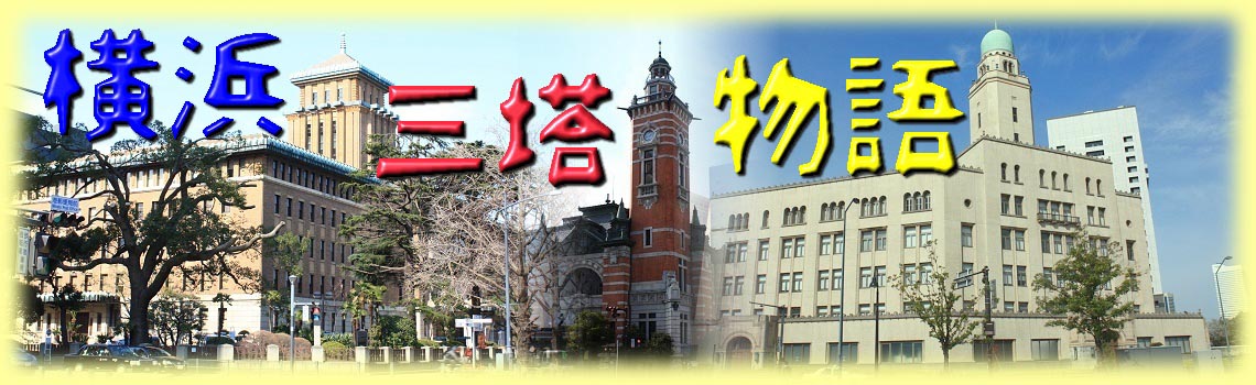 ### 横浜三塔のデータ ### 建物住所:横浜市中区日本大通1 塔の高さ:49メートル 完成時期:1928年 建物特徴:「帝冠様式」と言われる和風の瓦屋根で皇帝の威風が現われる 建物住所:横浜市中区海岸通1−1 塔の高さ:51メートル 完成時期:1934年 建物特徴:イスラム寺院風のエキゾチックなドームとクリーム色の外壁が女王らしい 建物住所:横浜市中区本町1−6 塔の高さ:36メートル 完成時期:1917年 建物特徴:東南隅の赤レンガと花崗岩の時計塔はスリムで、王族をしっかり守る衛兵さんに見える | |