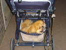 せまい荷物入れ に乗ってお散歩♪ まぁ楽チンだから いいかなぁ〜