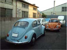 | 左の青いビートルが私の始めての車。京都での学生生活の最後にあり金はたいて購入し、一緒に愛知に買ってきたビートル。こいつに初めて乗ったとき、「やばいなぁ、これはハマルぞ」と感じた予感が的中。見事に空冷ワーゲン病に感染してしまいました。 青いビートルに2年間乗り、それから左のカルマンに乗り換え、順調に旧車ライフを過ごしていたところ、私の生活に変化が訪れたのです。今までは会社の敷地の中にある寮に住んでいたために通勤は徒歩0分で車は完全な趣味であったのですが、寮にいられる期間をすぎてしまい、寮を出ることに。会社から10kmほど離れた所に引越しをせざるおえなくなり、初めて車を実用の足として捉えなくてはならなくなったのです。 そう、旧車乗りであれば必ず直面する「趣味と実用」とのせめぎあいに直面していしまいました。その時乗っていたカルマンは調子よかったのですが、なにせ40年前の車、なにがあってもおかしくありません。それに、カルマン、かっこいいのですが、後ろはほとんど見えない、変なドラポジで疲れる、どうだ!!と言わんばかりのカッコいい車で毎日通勤するのは気が引ける(?)などの理由から残念ですが通勤の足という役割にはふさわしくない、という結論に達しました。 では、どうするか??? 国産車やニュービートルへの乗り換えも考えましたが、やはり、好きな車に乗っていたいという気持ちに忠実に3度、空冷ワーゲンに乗ることを決意。1台目の青いビートルの経験から適度な趣味性と実用性を備えたTYPE.1(ビートル)にすることに決定。以下の条件で通勤ビートル探しを始めました。 通勤ビートルの条件 ・何よりも機関良好 ・'67以降の高年式車(12Vやブレーキの容量のため) ・オリジナルに近いもの(これは後の自分の楽しみのため) ・できれば'72以前のスタンダードモデル(自分の好み) ・明るい色(明るい気分) Yahooオークションや個人売買を入念にチェックし、何台か見て回った後、Old Timerの個人売買に載っていた'71スタンダードにピンと来て見に行った所、ずばり私の希望にドンピシャな車です。 |