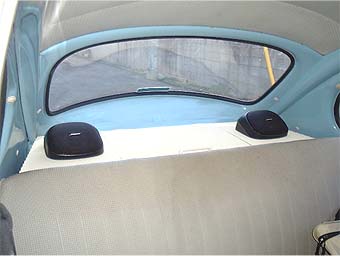 | ヘッドユニットが決まったところで、次はスピーカーです。あいにく、ビートルには右前の純正位置に一つだけしょぼいスピーカーが付いているのみ。新たにスピーカーを設置しなくてはいけません。幸い、昔、手に入れたBOSEのスピーカー(リア用)がありましたので、これを使ってみることにします。ついでに、荷物が丸見えというのもかっこ悪いので、スピーカーを置く台も兼ねてリアラゲッジトレイを製作してみました。 |