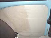 | 他にも目に見えない部分ですが、エンジンオイル、エアクリーナーオイル(オイルバス式です。)の交換を済ませました。ミッションオイルも交換したほうがいいかもしれませんが、売り主の整備工場のオヤヂがまだ大丈夫、もったいないよ、と力説していましたので半年後の車検時に行うことにします。 今回は行いませんでしたは、プラグ、プラグコード、デスビキャップ、ポイント、コンデンサーなど電装系も初期化というのであれば交換したほうがよかったかもしれません。でも、特に現状で問題ないので下手に触らないほうがいいのかな。しばらく様子を見ることにしましょう。 あと、この車、内装はくすんだベージュなんですが、何気なく手元にあったヤニ取りスプレーで拭いてみたらびっくり、くすんだベージュは全て汚れで、本当の内装色はオフホワイトでした。下の写真を見てよ、見事に左右で色が違うでしょ。これにはびっくり。タバコのヤニではなさそうですので、30年間蓄積された汚れなんでしょう。よく、こんな状態で乗っていたものです。 |