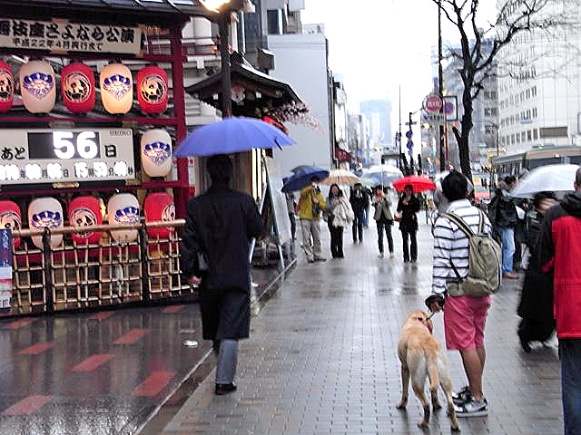 | ふと、前を見たらラブラドール・レトリーバーが散歩してるではないか。その引率者もTVで時々みかける姿にそっくりだ。はてな? |