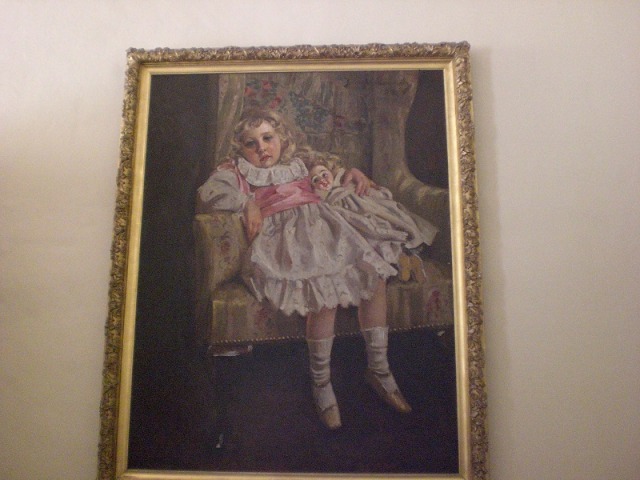 今回ぜひ見たいと思っていた、短編「戦勝舞踏会事件」に出て来たイタリアのコメディア・デラルテの登場人物アルレッキーノ(ハーリ・クィン)などの陶磁器の人形は、ピアノのある客間のガラス・ケースの中にあった。かつてアガサはこの人形を見てはいろいろな空想をしていたとか。アルレッキーノの人形は30センチに満たない大きさだが、ダイヤ柄の衣装がいまでも美しく、妖精らしくのびやかなポーズ。手に持っているのはなぜか鞭。