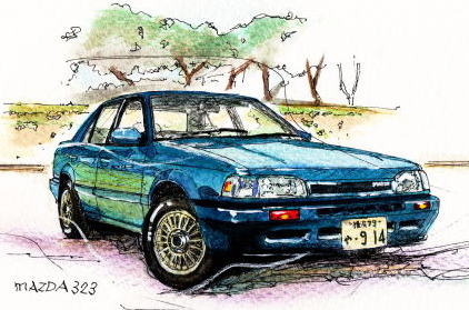 FAMILIA 二代目の愛車。 「やっぱり車は国産だよねぇ」 「動かにゃ車じゃないけんね」 などとほざく。 実際、FFだしオートマだしで 関越トンネルの大渋滞もラクラクでした。