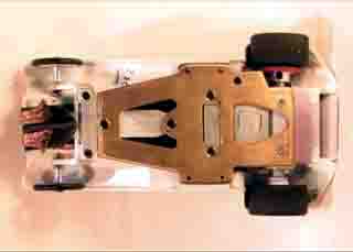 前輪にはミニ四駆のアルミ製ガイドローラー+Oリングを装備。