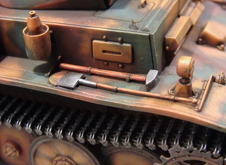 グリルやフックなどはエッチングパーツを使用。 砲身もアルミ製のモノに変えてあります。 ともにファインモールド製。 お手軽派にはオススメの取り合わせ。 実はEDUARDのフルセットも購入していたのですが おいらには、まだまだです。 |