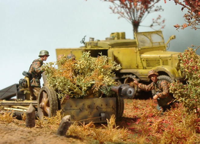 フィギュアはウォリアーのモノが主体。 木陰で指示を出す兵隊さんだけドラゴン。 |