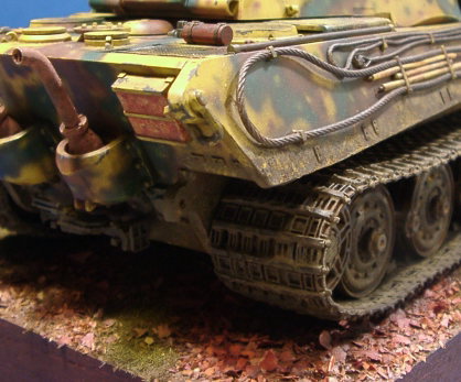 細部。 ハゲチョロに挑戦! パステルによる乾いた泥汚れにもチャレンジ! ハゲチョロはフォレホカラーを使ってみました。 なかなかの使用感。 泥汚れはアーマーで大活躍中の 斉藤氏の記事を参考に・・・ 転輪がこすれるキャタの部分は 綿棒でこすってソレらしく。 |