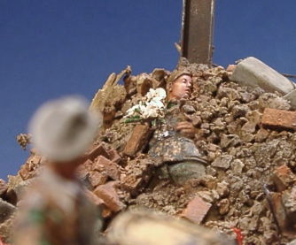 天国に逝った?戦友 ガレキに埋もれて目立たなくなってしまったので 花を添えました。 |