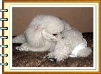 | 2001年11月15日(木)快晴 今日から、久し振りの4連休〜♪ 明日がお泊まりオフ会なんだけど、 ゆっくりしたいから、今日から那須に行く事にした。 10時に家を出て、那須に出発! 圏央道・東京外環を経て東北道で一直線。 途中、サービスエリアで 休憩を取りながら西那須野原へ...。 那須に向かう前にkyokomamaの お宅にお邪魔した。 初めてお会いするkyokomamaだったけど、いつも お電話でお話をさせて頂いていたので、ず〜っと昔からのお友達の様な 感じがした。生グーちゃん・生ティファちゃんとご対面♪ 可愛いお子達! ティファちゃん、モモがヒート中だったので、ノリが悪くてごめんね。 kyokomamaに美味しいお昼を親子でご馳走になった。 暗くならないうちに那須の‘ペンション イマジン’へと向かった。 kyokomamaとは明日、合流する事になっている。 チェックインを済ませた後、パパとモモとあたしで近所を散策。 モモの 排泄を済ませた。 イマジンでは、食事の時にモモは部屋で待たせておかなければならない。 建設中の‘イマジンドッグ’(11月23日オープン)の方は館内はどこでも O.Kとの事。 旅先でモモを一人で部屋に残した事がなかったので、心配だったのだが モモは部屋の中でTVをつけて大人しく待っていてくれた。 夜中、モモは部屋の外の音に敏感に反応して吠えたり、ドアーをガリガリ 外に出してを繰り返してくれた。 結局、あたし達は寝不足のまま、朝を 迎える事になった。