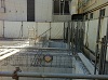壁部分の配筋の様子。現在は型枠が片側のみ施工されています。