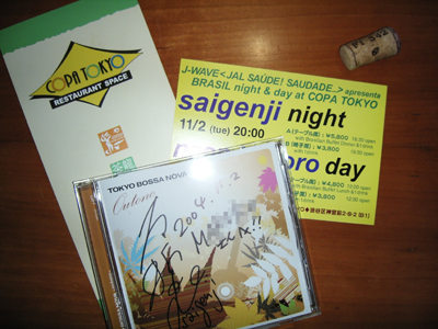 昨日は青山にある、「COPA TOKYO」で「Saigenji Night」を見てきました。 6:30に速攻で退社して、合流して青山へ。 受付を済ませ、テーブルに案内されました。 食事はブラジリアン・ビュッフェで、ワンドリンク付きでした。 料理の味は悪くないのですが、いかんせんしょっぱい…。 塩効き過ぎですって…。酒が進む、進む…。