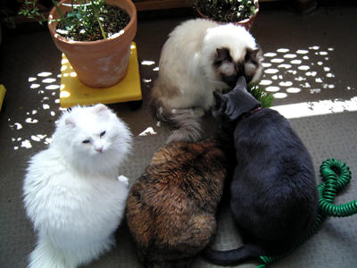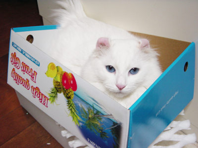 箱入りカリン。4匹が順番に入り心地を確認します。