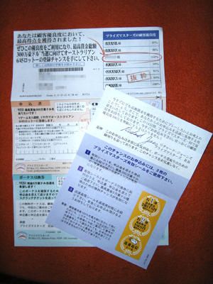 スパムですね。リアルの。 ネット検索かけると、ばんばんひっかかりました。 プライズマスターズってとこで、オーストラリアの宝くじ購入の案内です。てか、普通に国内から海外の宝くじを買うことは法律で禁止されてますので、残念!!!!! これで被害が2億もでてるそうです。気をつけましょう!