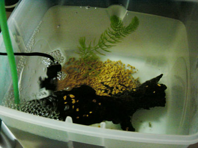 孵化して二日くらいは、口ができてないそうなので、餌はいらないそうな。いまのうちに、餌をしいれておかねば。