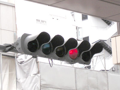 立川のバスロータリーの信号、赤、青、黄色とそれ以外は…。