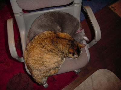 ミントがいつもの席をあんずに取られ、イジケテいるの図。