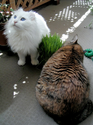 猫草タイム。