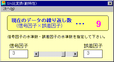 - スクロールバーで、信号因子の水準と誤差因子の水準を設定します。