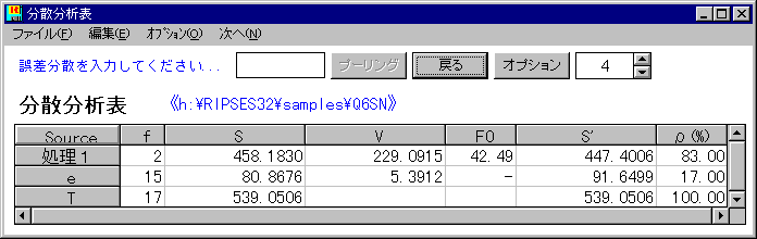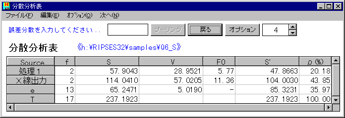 - 分散分析表が表示されます。必要があればプーリングを行います。