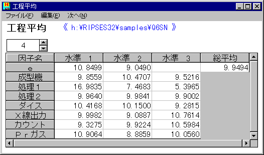 - 工程平均の推定を行う場合は、採用する水準をマウスでクリックすることにより、推定値が表示されます。