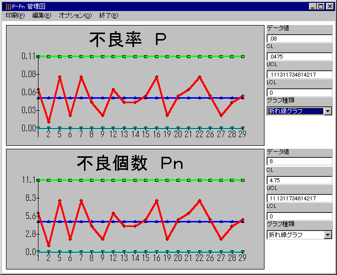 計数値による管理図の中で、不良率を対象としたものがP管理図、不良個数を対象としたものがPn管理図です。