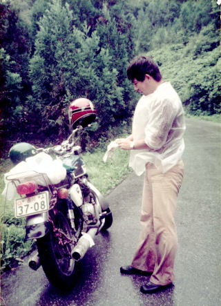 バイク暦に書いたCB350エクスポートです。今から30年位前かいな。これがかみさんと最初のツーリング。まだ学生で金が無い!カッパなぞ持ってないのでコンビ二で売っているようなビニールの奴、殆ど着てないのと同じですな。