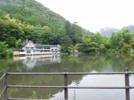 金鱗湖近くの駐車場に車を停め、金鱗湖へ向かい歩き始め