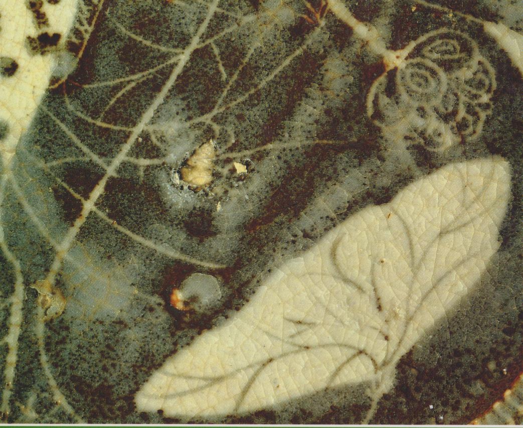 織部に描かれている文様は、基本的には当時の陶工の日常生活に密着したもので、家の周りで見られる動植物や身の回りの風物がその多くを占めます。織部が作られた時代には、陶工の画力は志野の時代より遥かに優れたものとなり、その筆の勢いには目を見張るものがあります。